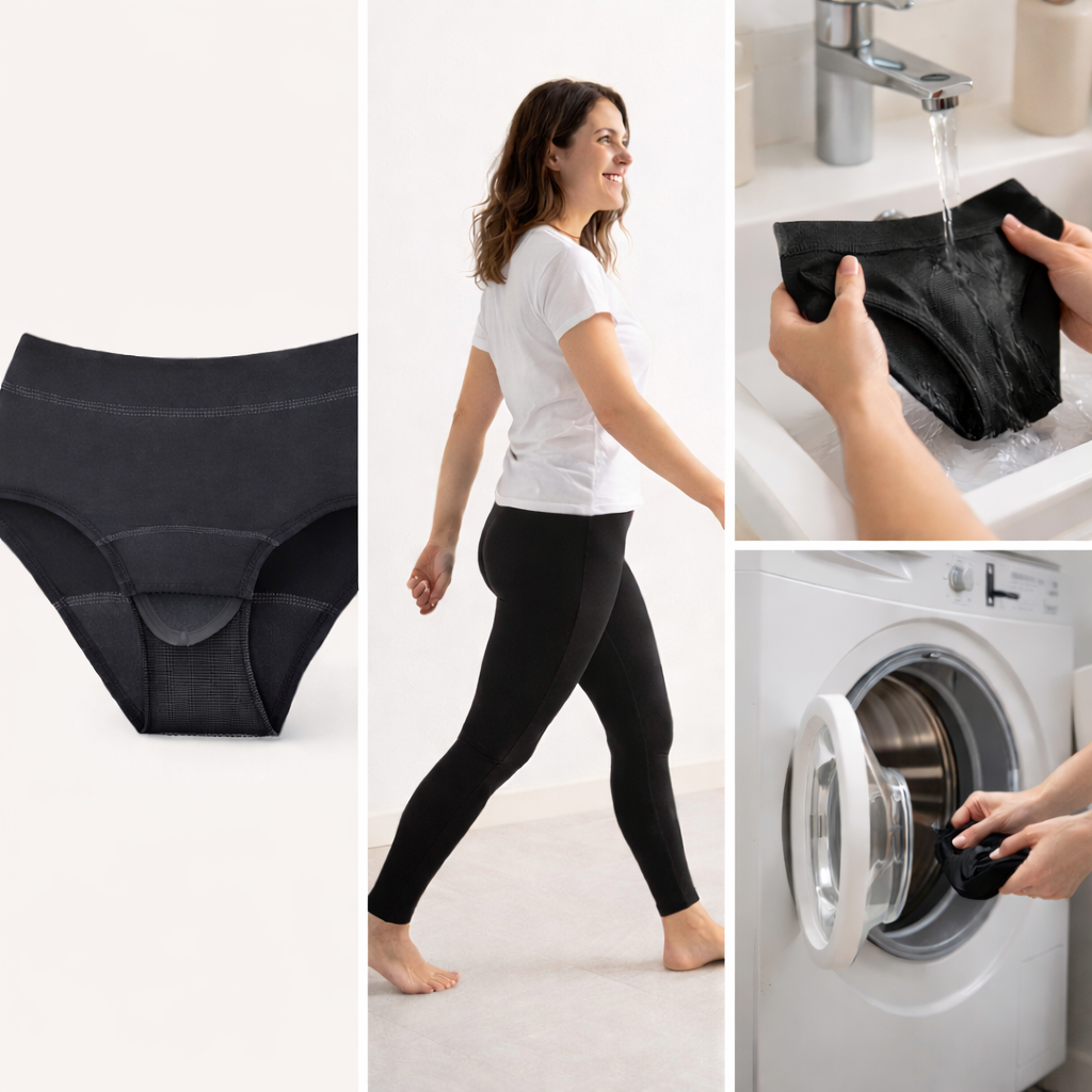 Te la pones y sigues. Absorbe rápido para que te sientas más seca y la capa antifugas ayuda a evitar escapes al dormir o en días largos. Se ajusta sin molestarte y queda discreta. Luego, enjuague en frío y lavadora. Listo: tranquilidad real, sin “sensación pañal”.